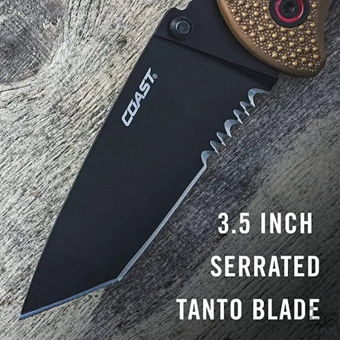 Agarre y resistente, el mango plano de tierra oscura moldeado por inyección oculta la tecnología de asistencia de hoja patentada por COAST en el interior, para una apertura rápida y autoritaria con solo mover el pulgar. Y por seguridad, COAST Max Lock y Liner Lock duplican la protección de manos sólida como una roca. Inspirada en la antigua cuchillería japonesa, la hoja estilo Tanto de 3,5 pulgadas y parcialmente dentada está hecha de acero 9Cr18Mov con un revestimiento plano resistente a la corrosión de nitruro de titanio negro, ideal para perforar, cortar y rebanar con un filo de larga duración. Potente por dentro y por fuera, el RX357 siempre es más de lo que parece".