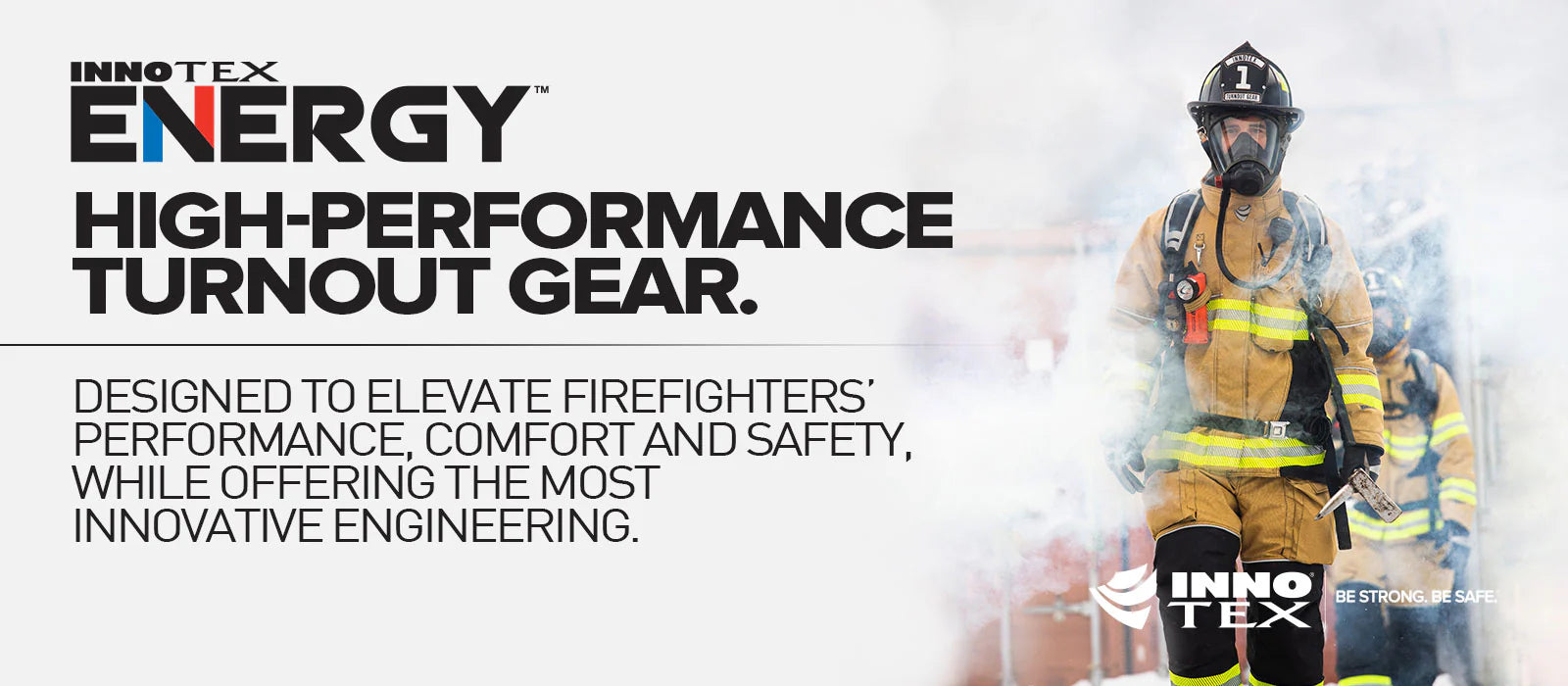 Introducing Innotex's most advanced turnout gear to date: The ENERGY ELITE. They have reengineered their high-performance gear by combining their unique features and designs. The AIRFLOW system and Dual Metabolic Zone design now work, and this is key for ultimate protection, comfort, and durability. It’s also everything you’ve come to appreciate about our industry-leading ENERGY turnout gear, and even more. That’s elite.