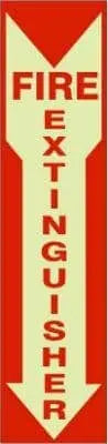 EXTINTOR DE INCENDIOS QUE BRILLA EN LA FLECHA ABAJO - Autoadhesivo brillante - 4" X 20"