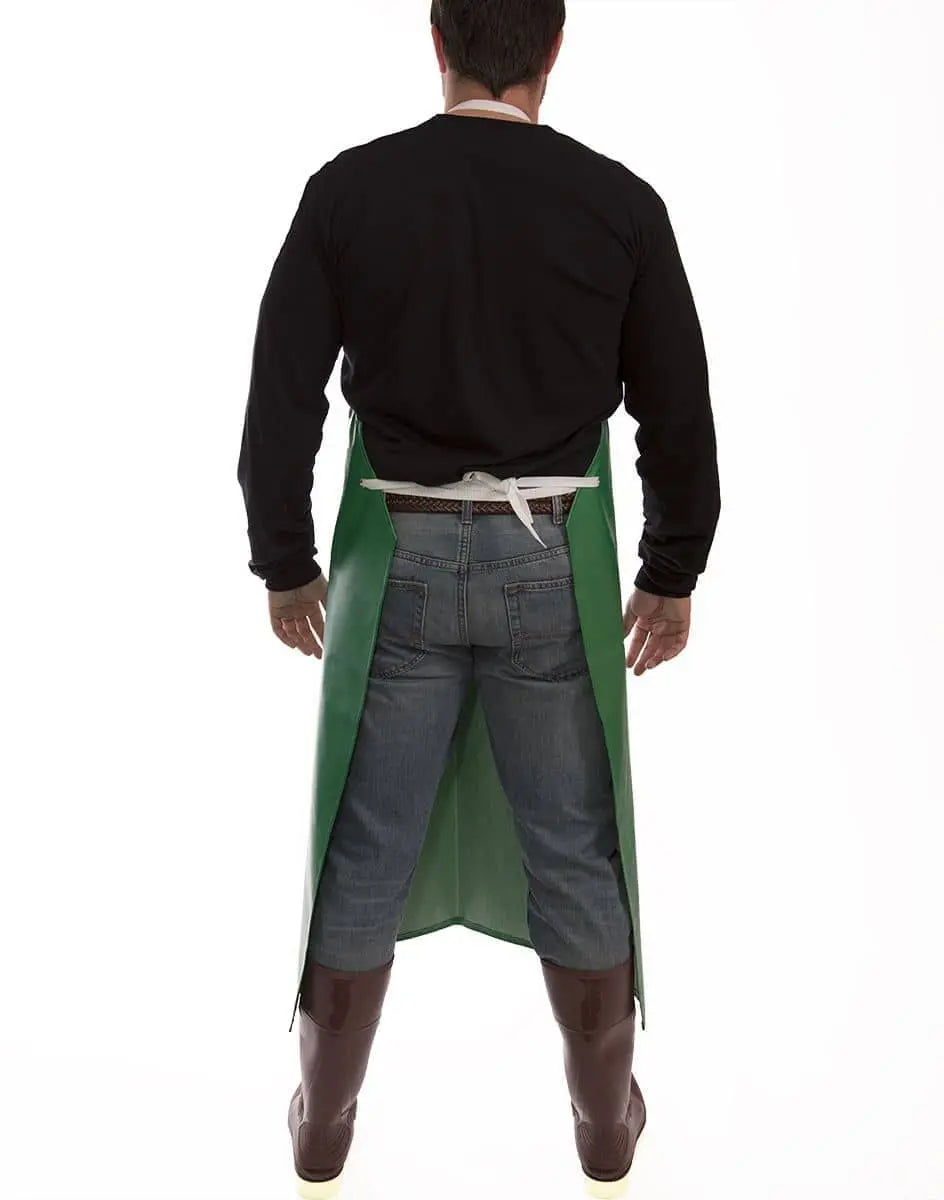 TINGLEY Safetyflex FR Chemical Resistant Green Apron — 38" x 48" delivers unmatched protection in demanding industrial environments. Crafted with SafetyFlex® flame resistant specialty PVC on polyester, this apron is designed to guard you against harmful chemicals and acids while keeping you comfortable through long shifts.